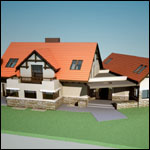 Dom jednorodzinny z antresolą, z niezależnym budynkiem garażu.
